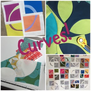 demonstrations on cutting, sewing, and glue basting improv and traditional curves.