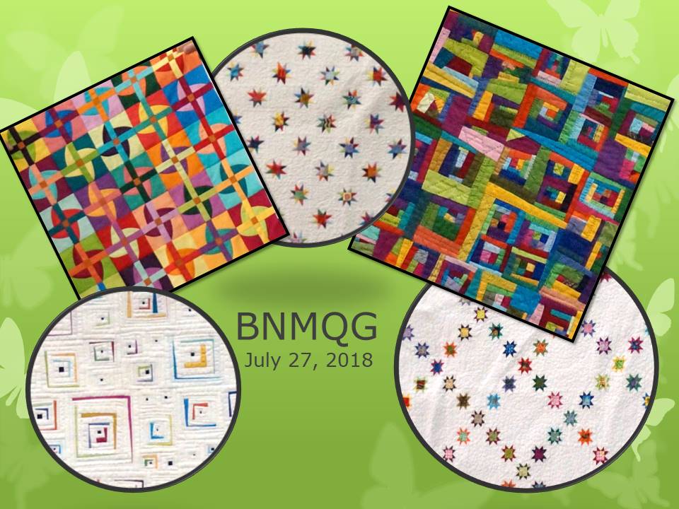 President Kathy C. welcomed everyone to our July meeting. She introduced our guest speaker for the evening, Lynn Carson Harris from the Ann Arbor Modern Quilt Guild. Lynn is also doing a workshop on Saturday, July 28th.