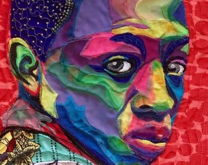 This month we’re featuring textile artist Bisa Butler. With rich colors, this quilter makes breathtaking, intricate portraits from cotton, silk, velvet and wax printed textiles sourced in Ghana.