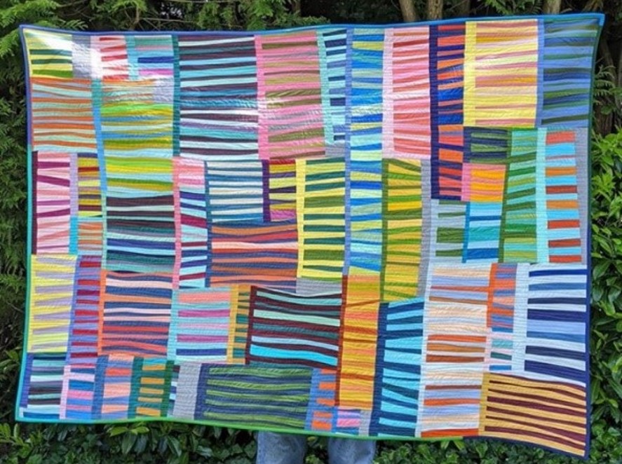 This month’s featured quilter is Debbie Jeske. A quilter from the Pacific North West, she is a member of the Seattleaquilterstable.blogspot.com Modern Quilt guild. Her blog, A Quilters’ Table, has lots of wonderful tutorials to explore. She also sends a newsletter called The Scrap Basket that you can sign up for on her blog. Debbie is a master of improv and has hosted several quilt alongs on instagram. A member of the award winning group #beesewcial, Debbie and her beemates won best in show QuiltCon 2019. Find Debbie @aquilterstable on instagram and aquilterstable.blogspot.com