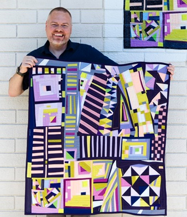 The zoom-only meeting was called to order at 6:00 pm by President Noemi B. She asked Nancy P, Program Chair, to introduce the speaker, Charles Cameron of @FeltLikeSweets, whose lecture was titled “Color Value and Color Placement in Your Quilts.” Charles began quilting in 2018, and has had quilts in many national shows and QuiltCon. He is an engineer and feels his approach to color and value is guided by his engineering background. He feels that color and value have an inherent order found in nature, and he utilizes this order as a tool to enhance a quilt’s design. He gave a brief summary on color theory, noting that colors in the color wheel also use that nature-inspired order, and using that order helps make the colors “dance.”