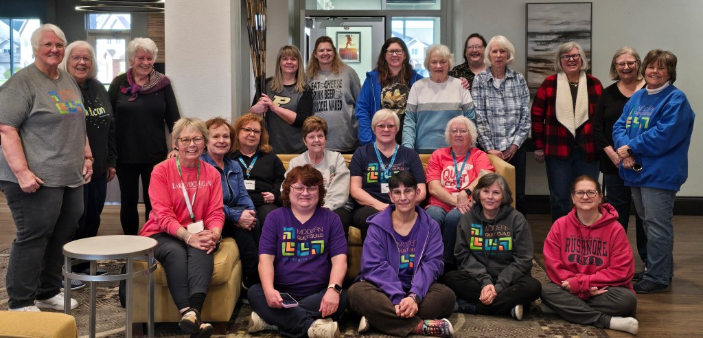 Exhibits – Nancy P has collected quilts for the Bloomington Public Library exhibit opening March 1, but if you will have a mini done in this year’s color and are interested in having it in the exhibit, you can contact Nancy asap. Quilts will need a brief description and a sleeve on the back. The exhibit runs from the 1st – 31st, with a reception being held on March 7 from 1:30-3:30 pm. Cookies and water will be served. There is a sign-up genius to help put up, help host at the reception or take down the exhibit, with a link on the members page of the website. Nancy also said that the Julep quilts currently on tour with Original Quilting and Sewing Expo will be returned in May, and the Nocturne quilts will be sent out in June, first to a Springfield, MO show, then to Original Quilting and Sewing Expo for their quilt shows.