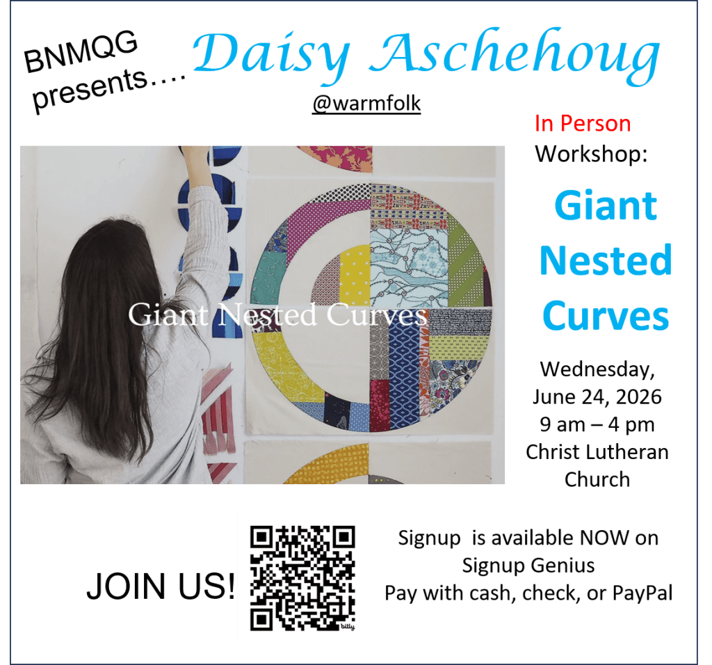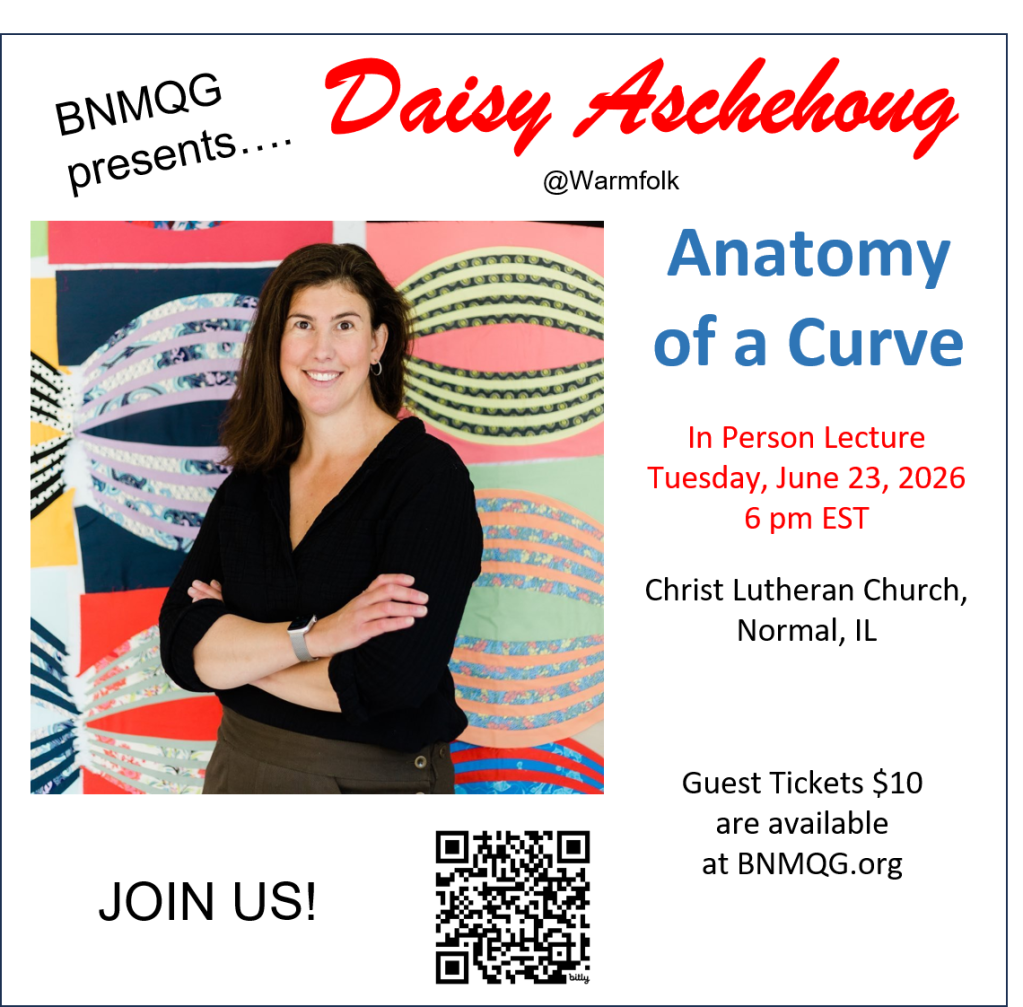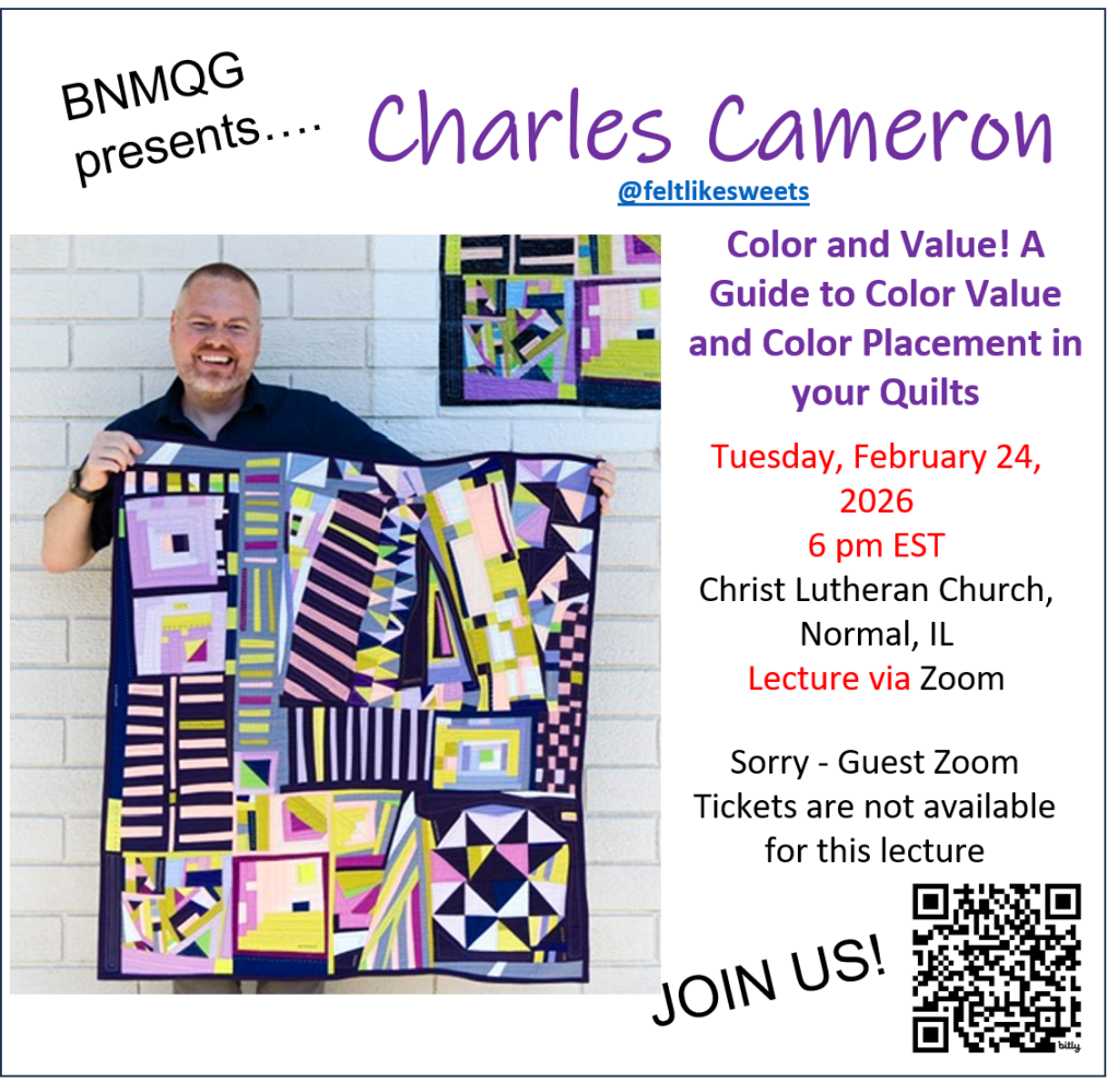 Refund Policy: Workshop purchasers who cancel must notify the Programs Chair at BNMQGprograms@gmail.com no less than 72 hours before the start of a workshop. The BNMQG will attempt to arrange a private resale of the space from the online wait list if spaces have sold out. No refunds will be issued by the BNMQG. Due to the 72 hour workshop cancellation policy, the Zoom link, along with any additional information the instructor provides, will be emailed to all registered participants at least 48 hours prior to a workshop. It is the student’s responsibility to make sure that they get the information/link. Let the Programs Chair at BNMQGprograms@gmail.com if it is not received.