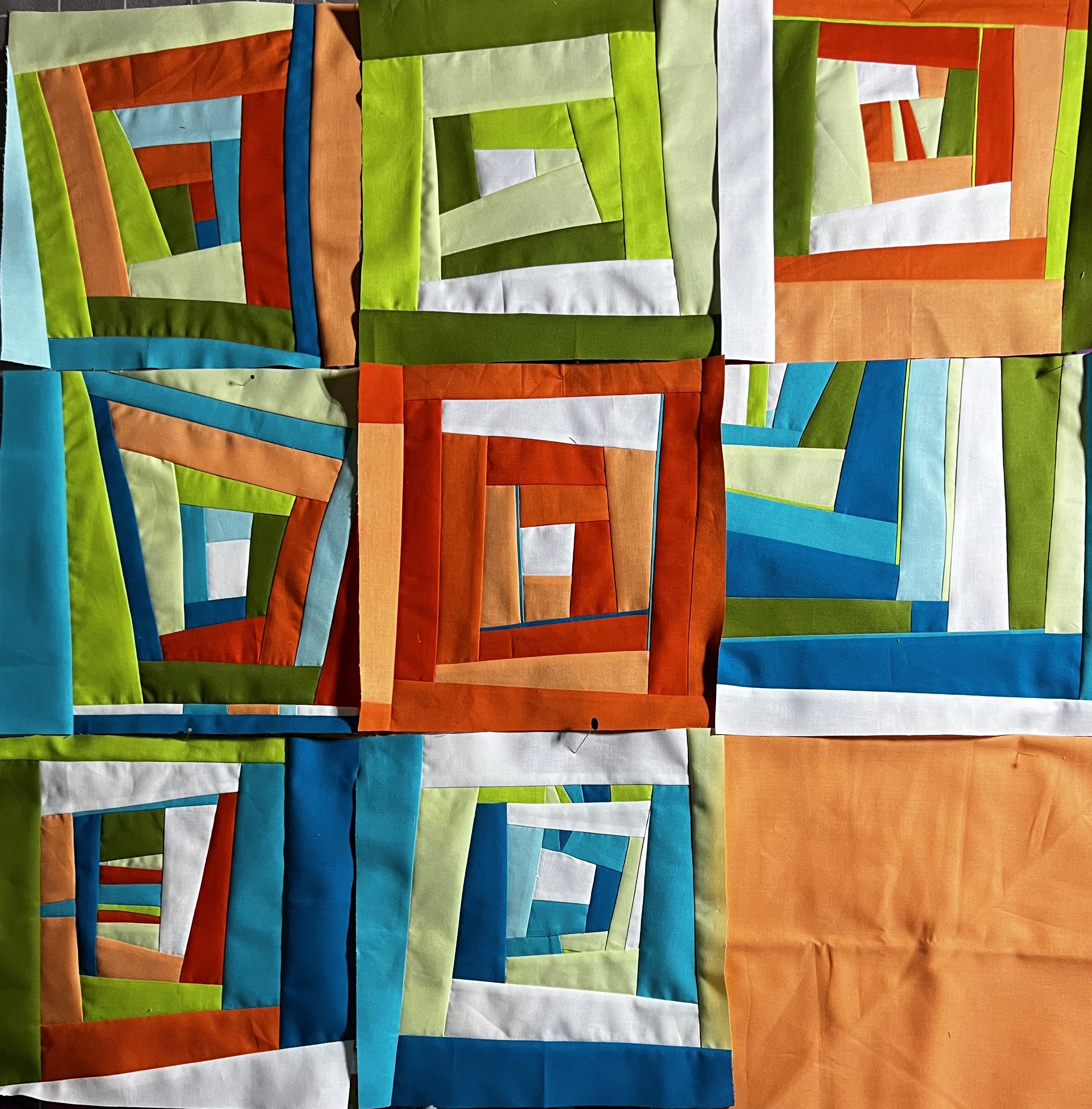 BNMQG is kicking off our 10th Anniversary Celebration! We are asking members to create 10″ finished (10 1/2″ unfinished) improv log cabin blocks from the Kona cotton colors of our guild. These blocks will then be made into quilts by our Community Outreach Committee for places such as Community Cancer Center and Bed Blitz.