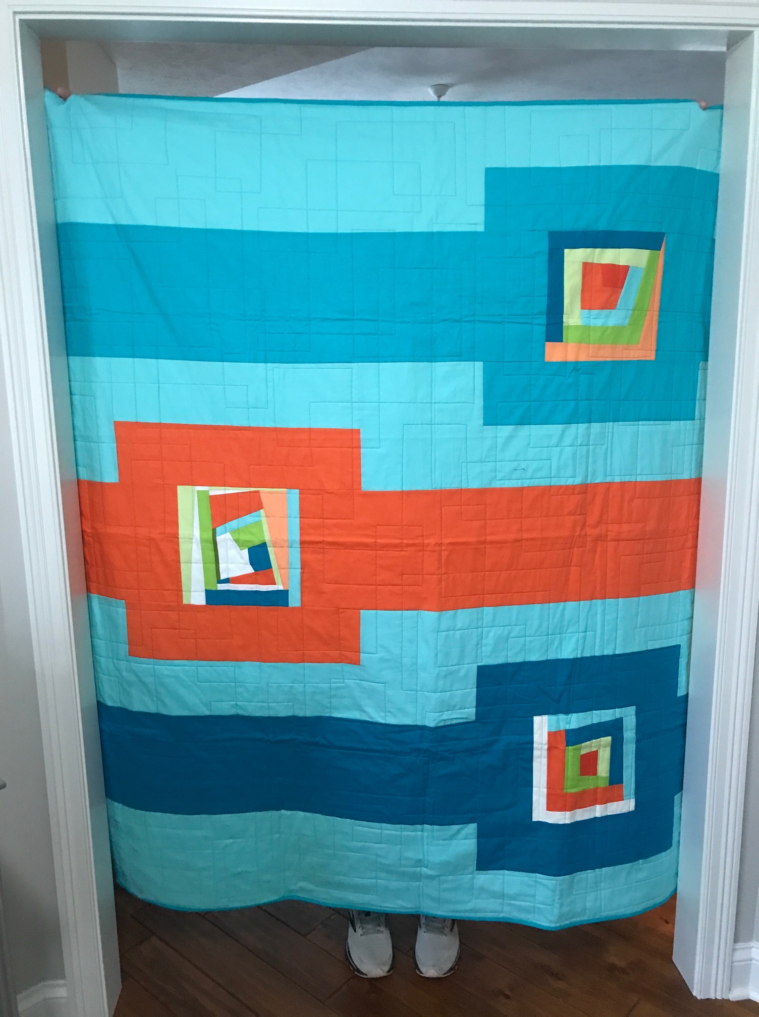 It takes 42-56 blocks to make one quilt. Here is the count to date – let’s try for enough blocks for 10 quilts (about 450 blocks) for our 10th anniversary! What a great way to celebrate 10 years of modern quilting BNMQG!